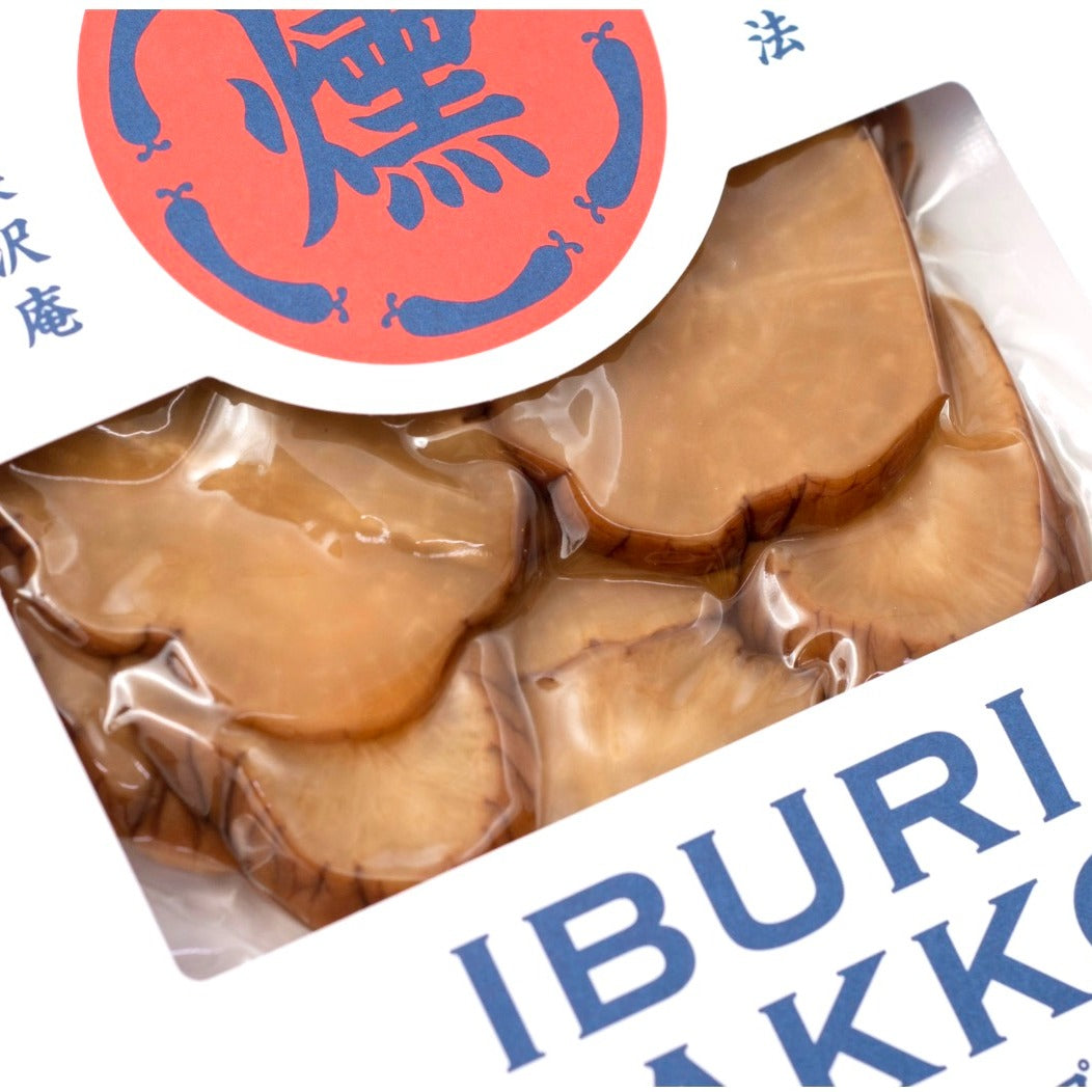 Iburigakko is a traditional Akita pickle made by smoking and drying daikon radish, which has been passed down since the Muromachi period. ``Akita Matured Pickled Iburigakko'' has a crispy texture using the ``Beer Soaking Method''. Enjoy the flavor of pickled takuan and the smoky flavor of incense.