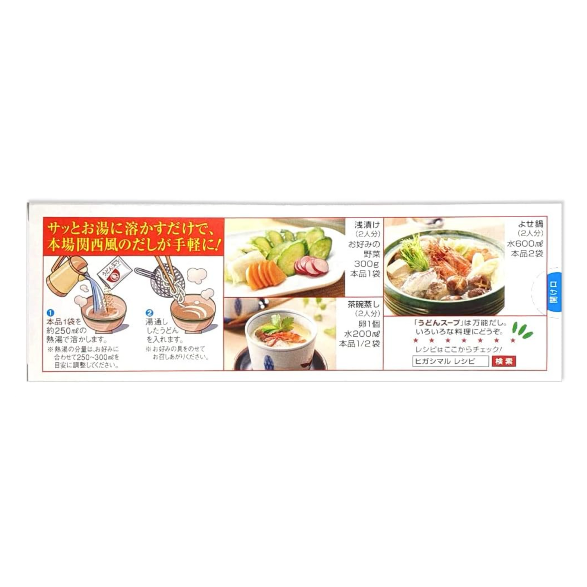"Udon Soup" allows you to easily enjoy flavorful udon stock by simply dissolving it in hot water.