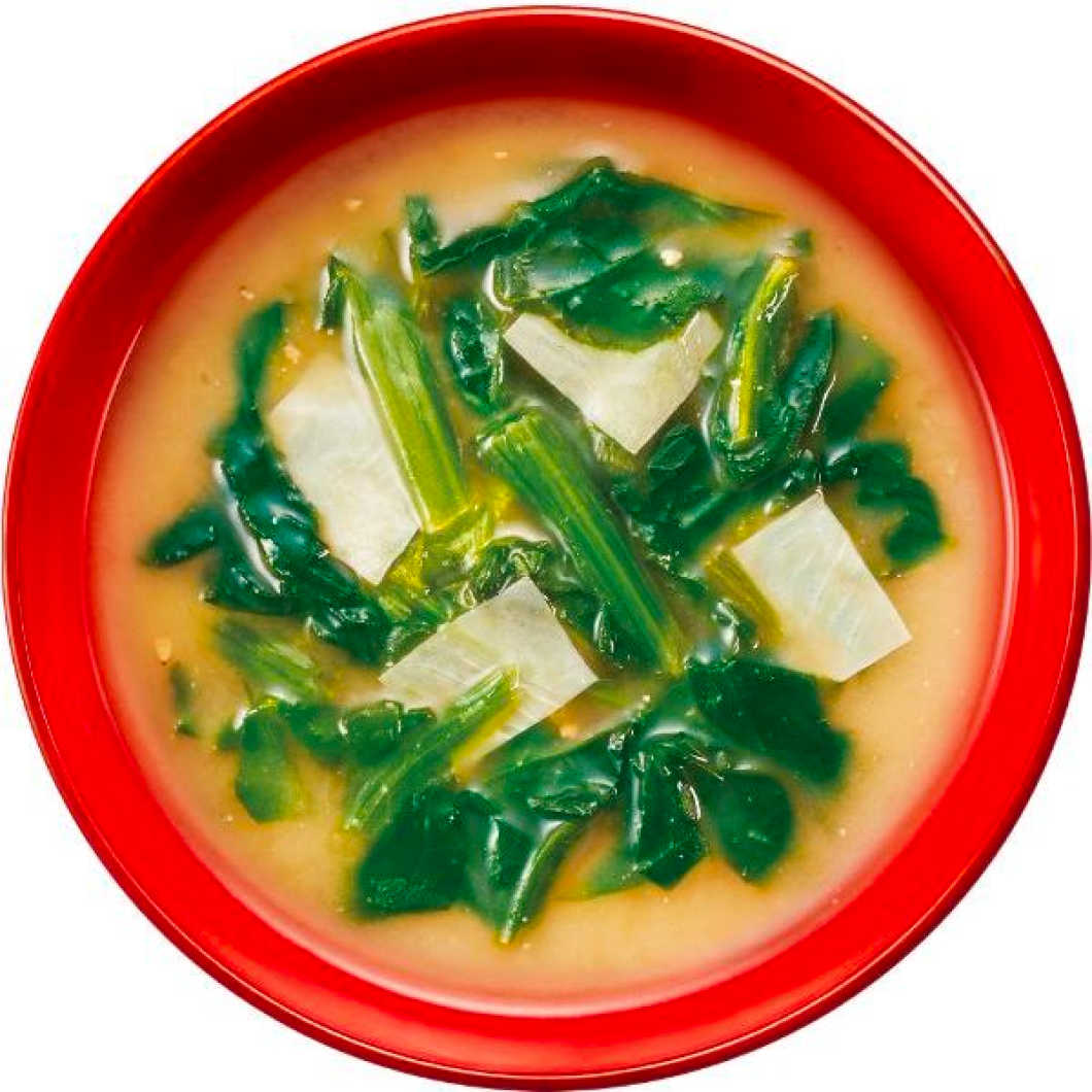 It is a spinach and yuba miso soup with the scent of white sesame. You can enjoy the plenty of spinach and elegant yuba.