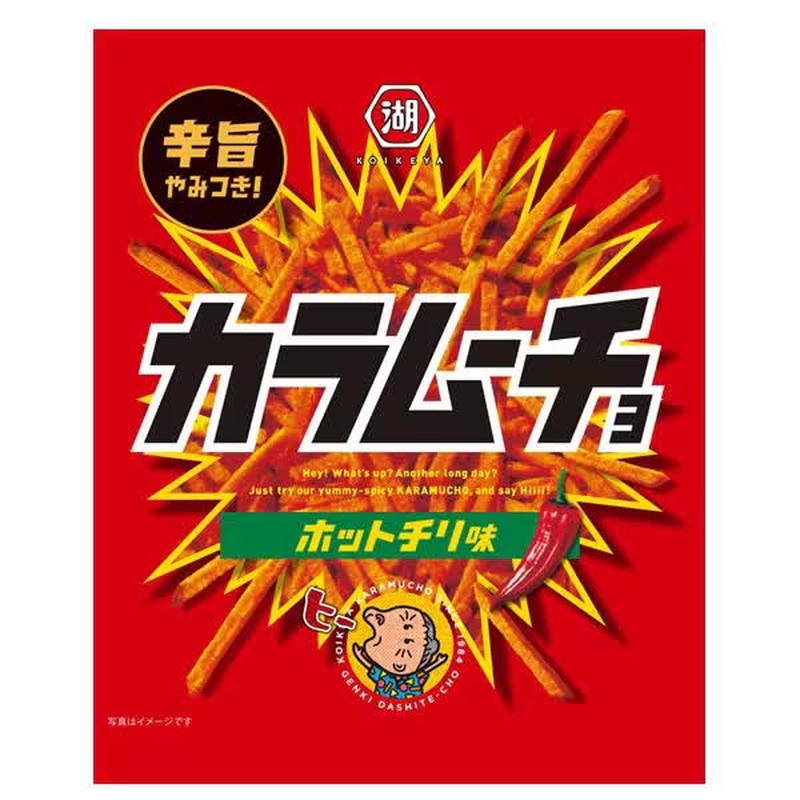 Stick-type potato chips with a delicious spiciness made with meat, vegetables, and chili (hot peppers) Koikeya's "Stick Karamuucho Hot Chili Flavor 90g" is a stick-type potato snack with a crunchy texture. The hot chili flavor is a perfect blend of the savory flavor of meat and vegetables and the spiciness of chili peppers, and has a good balance of spiciness and flavor, making it satisfying to eat. The ingredients include non-genetically modified potatoes from Japan, vegetable oil, spices, chicken extract powder, vegetable extract powder, etc.