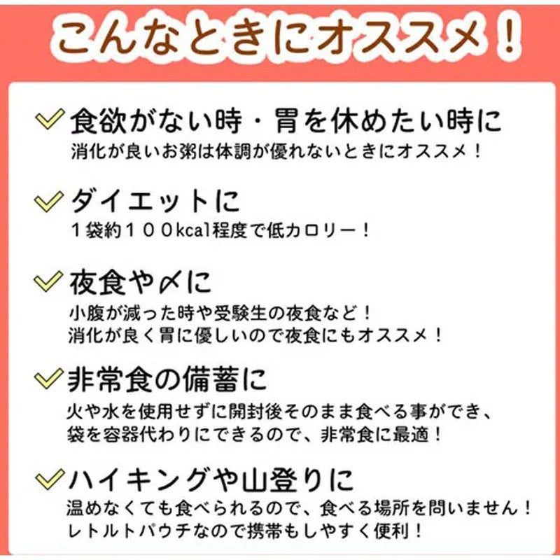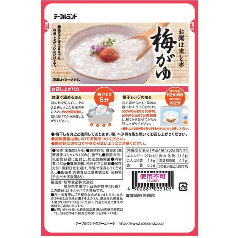 Porridge with whole pickled plums from Kishu This porridge is made with plump, cooked koshihikari rice and whole pickled plums from Kishu. The pickled plums are made using traditional methods from Nanko plums from Kishu, Wakayama Prefecture.
