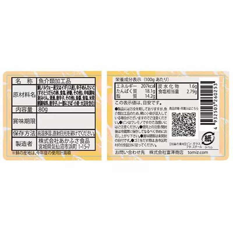 Product specifications for Akafusa Foods Spicy Mackerel Mentaiko 80g