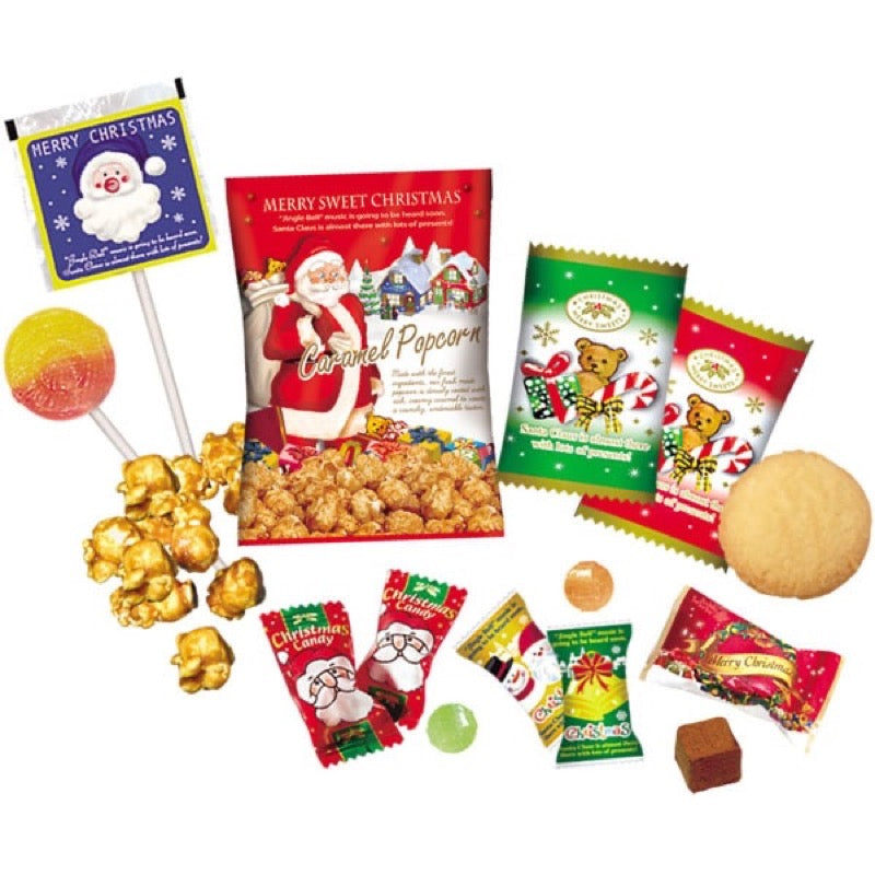 A chic finish. Sock boots with a subdued design. *Socks come in three assorted patterns. Assortment of five types of sweets. A set of approximately nine lollipops, candy, cookies, chocolates, and popcorn. Perfect as a gift. Enliven any Christmas occasion, whether at a party or as a gift.