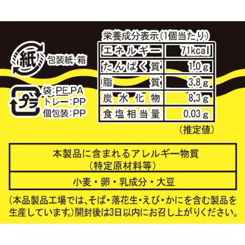 Contents: 9 pieces Ingredients: Chicken eggs (domestic), custard cream (vegetable oil, reduced starch syrup, sugar, sweetened condensed milk, others), wheat flour, sugar, vegetable oil, maltitol, sweetened condensed milk, coffee drink/emulsifier (soybean-derived), sorbitol, flavoring, calcium carbonate, thickener, coloring (caramel, gardenia), leavening agent, antioxidant (V.E), sodium caseinate, stabilizer (carrageenan) Nutritional Information: Per piece: Energy 71kcal, protein 1.0g, fat 3.8g, carbohydrates 8.3g, salt equivalent 0.03g (estimated) Storage Instructions: Store away from direct sunlight, high temperatures, and humidity. Consume as soon as possible after opening. |