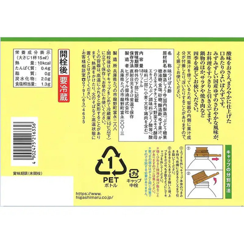 Higashimaru Soy Sauce Mellow Ponzu 1.8L [Vinegar] Product Specifications