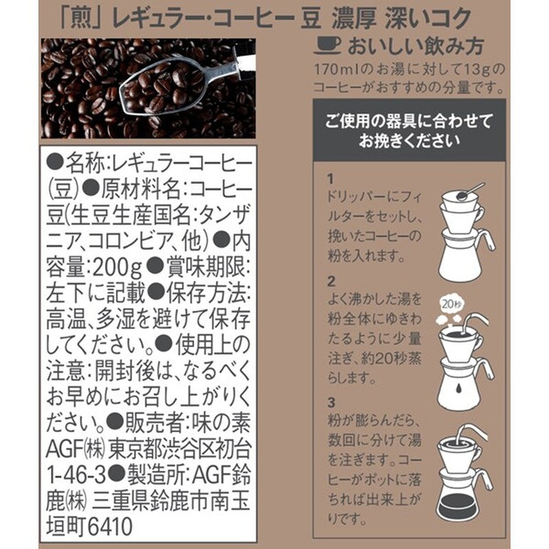 Ajinomoto AGF "Sen" Regular Coffee Beans, Rich and Full-bodied, 200g Product Specifications