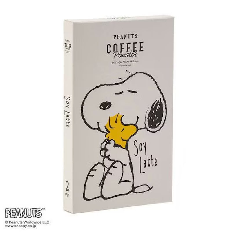 Snoopy-design "Soy Latte" Enjoy a warm, cozy, and gentle-tasting soy latte while gazing at the adorable illustrations of Snoopy and Woodstock. This latte, perfect for soy milk lovers, offers the perfect balance of flavor and deliciousness. PEANUTS coffee PEANUTS coffee complements Snoopy's favorite chocolate chip cookies. This coffee series features the cheerful Peanuts gang on its packaging, including Snoopy, Charlie Brown, and Woodstock. The lineup is delicious to drink and delightful to display. No artificial colors, flavors, or additives are used. PEANUTS coffee contains only coffee and dextrin*. It contains no artificial colors, flavors, or additives, so you can enjoy it with peace of mind. *Dextrin source: Cassava (Dextrin is a natural food ingredient made by breaking down starch. It is free of genetically modified ingredients, so you can enjoy it with peace of mind.) Convenient to Carry The lightweight stick-type packaging makes it easy to carry. At work, at home, or on the go. Enjoy the ultimate coffee experience anytime, anywhere. Storage Instructions - Store in a cool, dry place. - Use the sticks immediately after opening. - Fine coffee powder may settle during dissolution, but this does not affect the quality. - This product is a powder with a low moisture content and low water activity, ensuring stable quality and safe consumption until the expiration date.