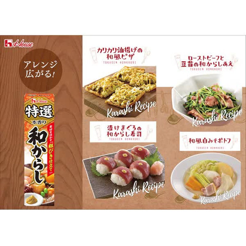 House Foods Tokusen Honkaori Wakarashi 42g is a carefully kneaded spice made by kneading mustard at the right temperature to bring out the spiciness and flavor of authentic mustard. It is characterized by its deep color and coarsely ground texture, and its prominent spiciness enhances the flavor of ingredients. It is also easy to use, with a tube type that is easy to squeeze out to the last drop, and an easy-to-use cap and mouth seal. This product is uncolored and allows you to enjoy the authentic aroma and spiciness while adding color to your table. It is suitable for those who want to fully experience the aroma and spiciness of Japanese mustard at home, and can be widely used as a condiment or seasoning for Japanese cuisine.