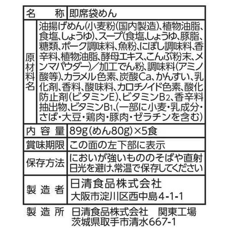 Product specifications for Nissin Foods Nissin Ramen Shop Asahikawa Soy Sauce 5-pack 445g