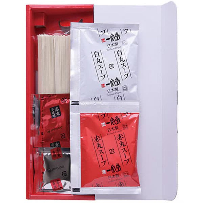 Ippudo's "Ippudo Tonkotsu Ramen 2 servings" is a set that uses dried noodles with a long shelf life, allowing you to easily enjoy authentic Hakata tonkotsu ramen at home. The set includes thin, straight dried noodles (75g x 2 servings), a clean, silky tonkotsu soup with a reduced lard content (41g x 2 servings), and spicy miso (5g) and fragrant oil (3g) for Akamaru, allowing you to enjoy two flavors: Shiromaru (soup only) and Akamaru (with spicy miso and fragrant oil). The soup is made from pork bones, with garlic paste and kelp powder added to give it a mellow and clear flavor. The noodles are made from domestically produced wheat flour and are characterized by their chewy, thin noodles. The spicy miso is based on doubanjiang and chili peppers, giving it a deep spiciness, and the aromatic oils add a rich flavor.