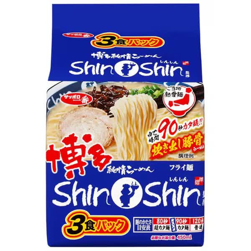 Sanyo Foods Sapporo Ichiban Local Hot Noodles Hakata Junjo Ramen ShinShin Supervised Cooked Pork Bone Ramen 3 Meal Pack