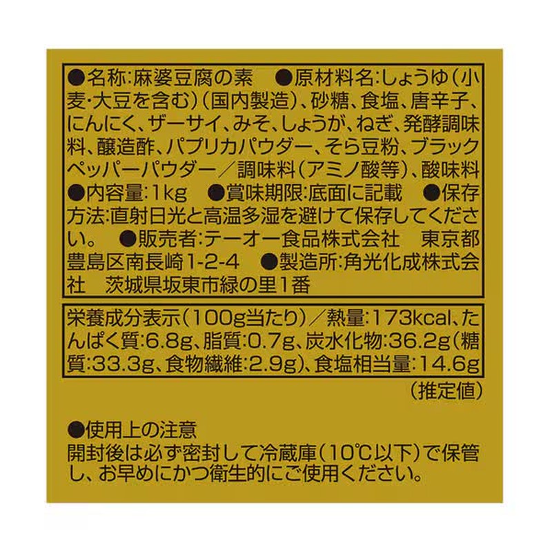 TEO Foods Mapo Tofu Mix 1kg Product Specifications