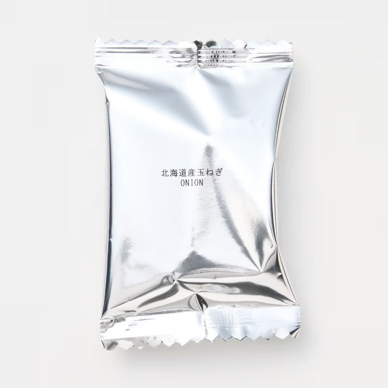 MUJI Edible Soup Hokkaido Onion Soup 4 servings is a freeze-dried onion soup made by slowly frying onions from Hokkaido over a long period of time to bring out the maximum sweetness and umami of the onions themselves. The soup uses beef bouillon as the base, and is characterized by an authentic taste that harmonizes the richness of onions fried until caramel-colored with the deep umami of beef.