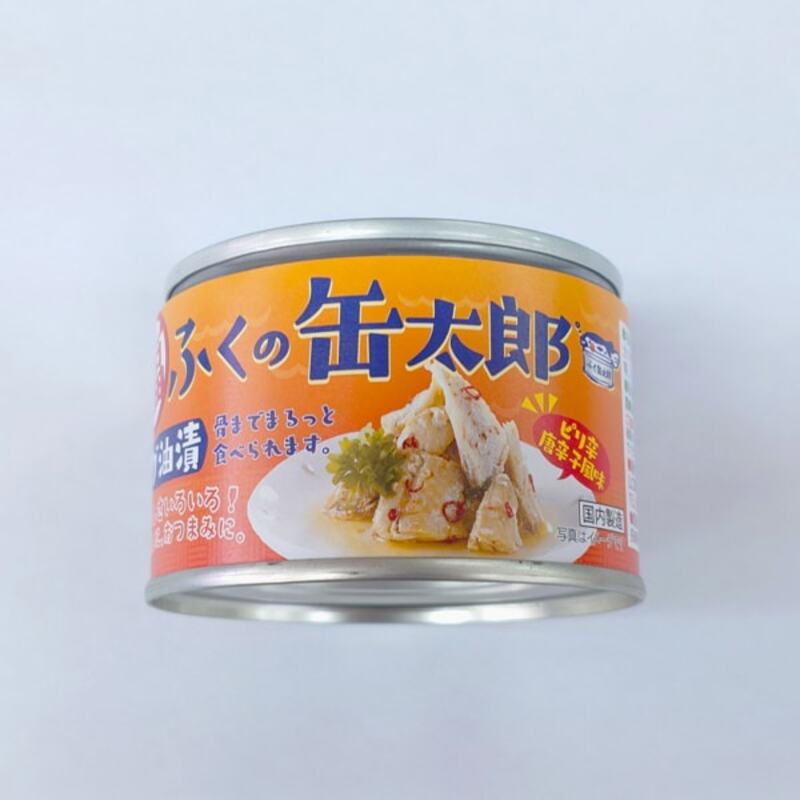 It is made by filleting small puffer fish and canning them in oil.It has the spiciness of hawk's claws and is a perfect accompaniment to wine, whiskey, shochu, and any other alcoholic beverage. Canning allows for long-term storage.