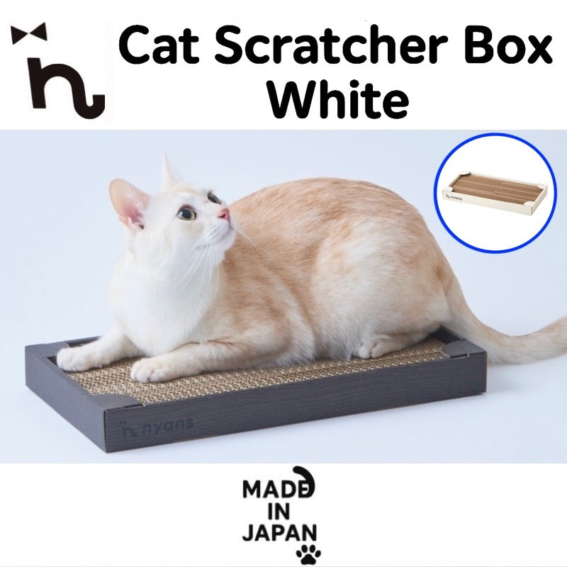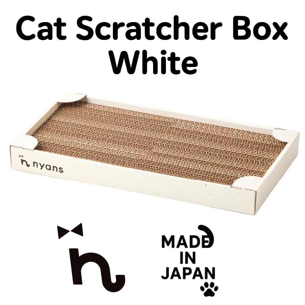 This compact box-type cat scratcher from nyans features a clean white color design. Made from Japanese reinforced cardboard with virgin pulp, it produces minimal debris and lasts up to three times longer than regular scratchers. Double-sided and refillable for long-term use. Ideal for cats up to 5kg.