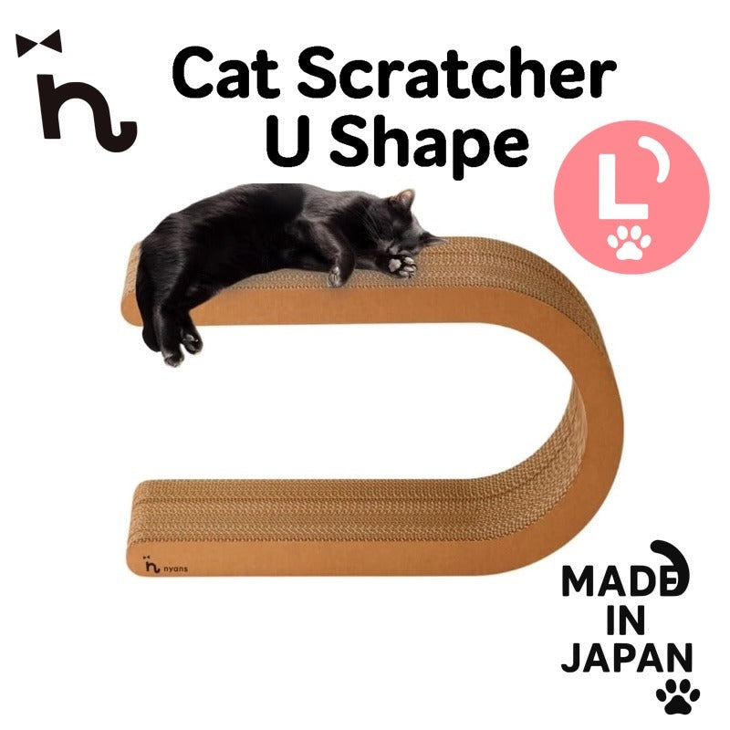 This U-shaped cat scratcher from nyans offers two ways to use: place horizontally for multiple scratching surfaces or stand it up as a tunnel. Made from high-strength Japanese reinforced cardboard with virgin pulp, it creates minimal debris and lasts up to three times longer than standard scratchers. Double-sided and ideal for multi-cat or indoor homes.