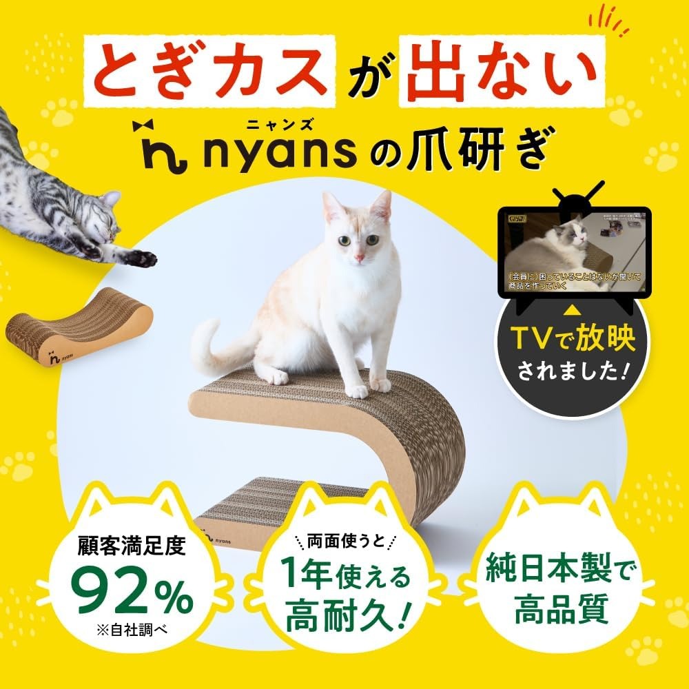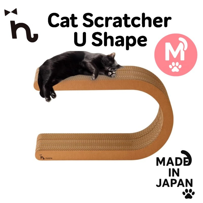 This U-shaped cat scratcher from nyans offers two ways to use: place horizontally for multiple scratching surfaces, or stand it up for tunnel-style play. Crafted from high-strength Japanese reinforced cardboard with virgin pulp, it produces minimal debris and lasts three times longer than regular scratchers. Double-sided and ideal for multi-cat households.
