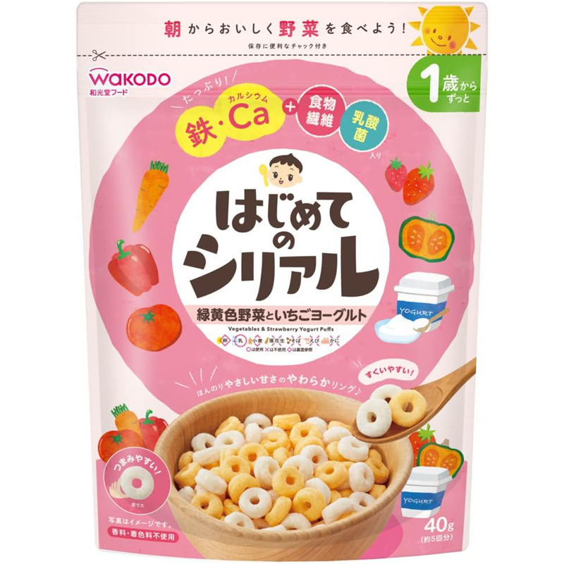 Wakodo First Cereal Green and Yellow Vegetables and Strawberry Yogurt 40g