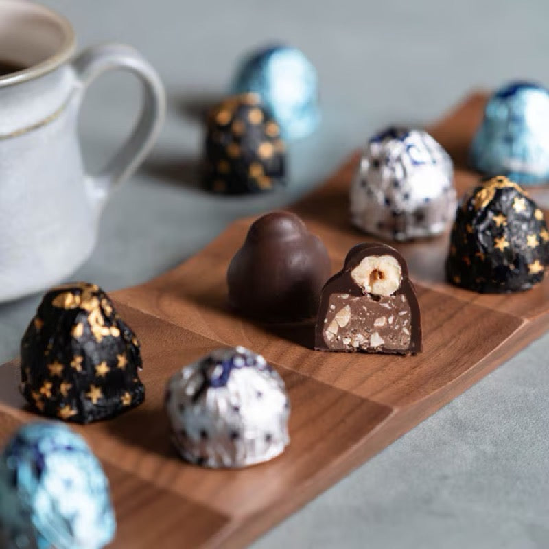 限量版包装。Baci巧克力是一款香气浓郁的巧克力松露,采用柔滑的榛子酱和细碎榛子制成,并饰以整颗榛子,最后裹上一层优质巧克力。这款什锦礼盒包含我们经典的黑巧克力、柔滑的牛奶巧克力和70%特浓黑巧克力。