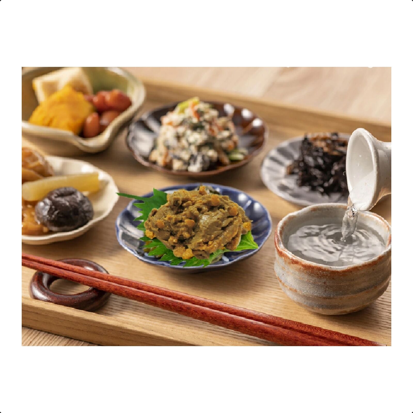 海膽罐頭和蟹味噌。請作為配菜與酒一起享用。