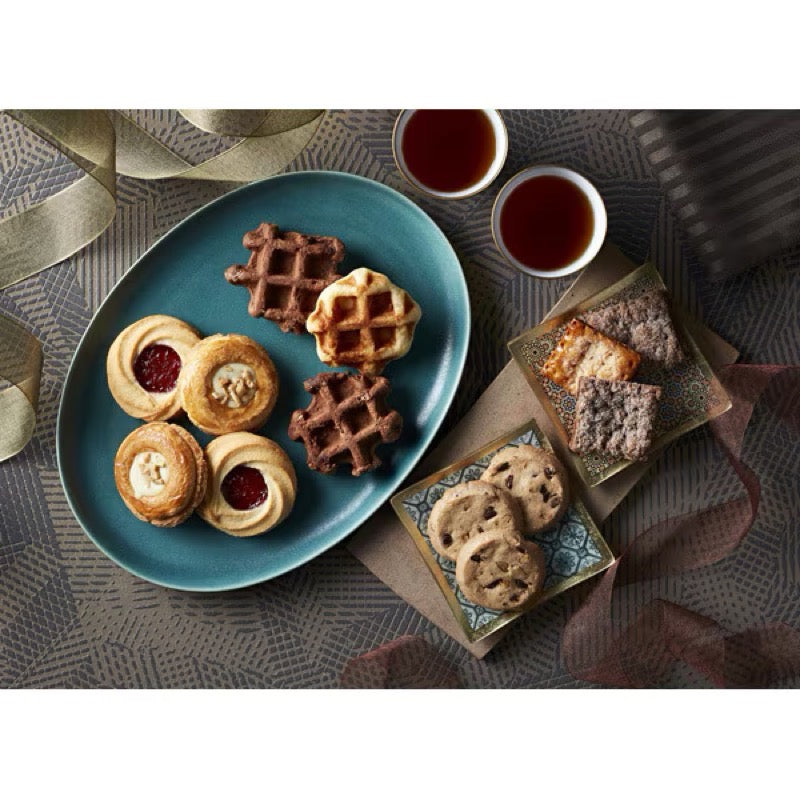 這份精心製作的禮物包括包裝精美的各種原味和巧克力華夫餅、淋上巧克力和果醬的俄羅斯蛋糕、酥脆的餅乾和香脆的餡餅。 這款盒子非常適合下午茶、招待客人、問候或作為禮物。