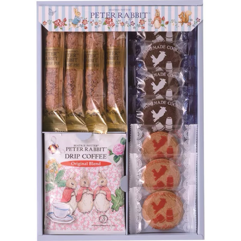 這款優雅可愛的禮品組以深受喜愛的彼得兔為主題。 這款禮盒包含多種香氣濃鬱的原味拼配咖啡和各種甜點,包括原味曲奇、可可曲奇和起司條派。無論是下午茶時光還是招待客人,都是絕佳之選,也是表達謝意的理想禮物。 花卉圖案的包裝使其成為送給特別之人的難忘禮物。