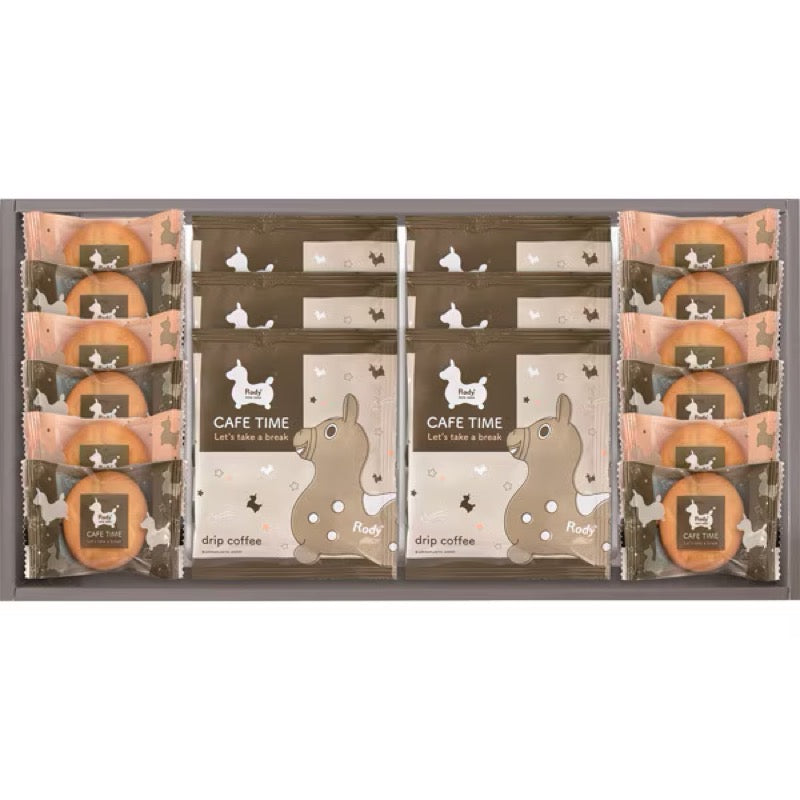 這款禮盒包含滴漏咖啡和脆巧克力奶油餅乾,包裝上印有 RODY 的剪影。 這款禮盒包含 12 塊餅乾和 6 袋 8 克裝的滴濾咖啡,是下午茶、招待客人或作為禮物的完美選擇。
