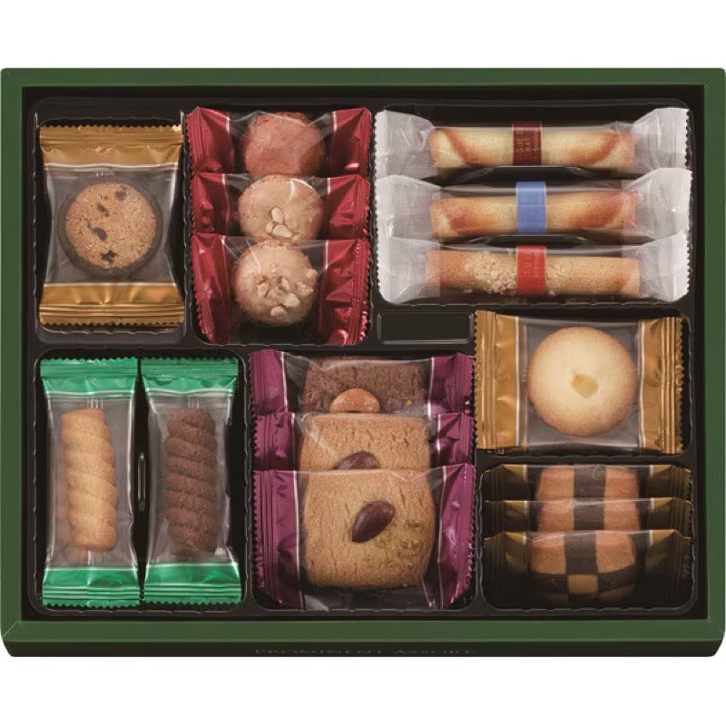 | 其他 | 內含: 3塊美式環形餅乾、3塊檸檬餅乾、2塊杏仁餅乾、1塊腰果餅乾、3塊可可原味餅乾、1個草莓馬卡龍、2個杏仁馬卡龍、6塊Corbeil(4種口味)扭紋餅乾(2種口味)x 6塊 尺寸(寬 x 深 x 高):約 247 x 302 x 57 毫米 重量:540公克 過敏原資訊:含有雞蛋、牛奶和小麥 桌子 |