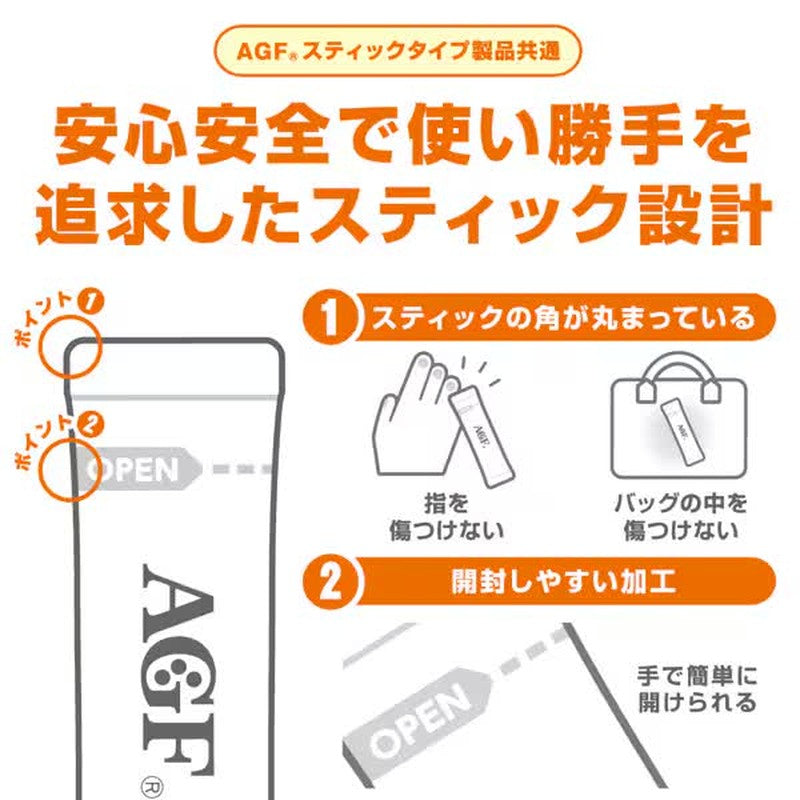 Blendy's "Stick Cafe au Lait, Bittersweet for Adults, 8 Sticks" is a bitter caf_ au lait made with carefully selected dark-roasted coffee beans. The optimal balance of coffee, milk, and sugar is blended in a special mixer to ensure consistent deliciousness every time. It's moderately sweet, with a sweetness level of 2, and has a slightly bitter taste that's more suitable for adults than regular caf_ au lait. Each stick contains approximately 41 kcal and is rich in polyphenols. It comes with eight individually wrapped sticks. Enjoy it hot, or easily ice it with hot water and ice.