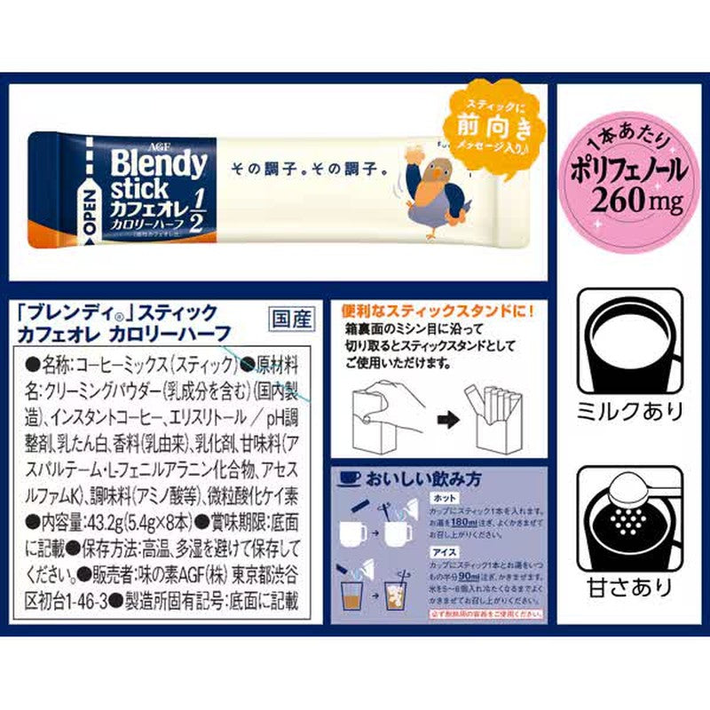 Blendy Blendy Stick Cafe au Lait Half Calories (8 sticks) Product Specifications