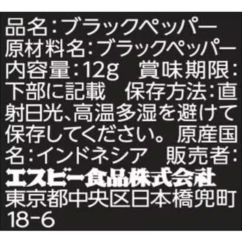 S&B Foods S&B Value Spice Black Pepper (Coarse Ground) 12g Product Specifications