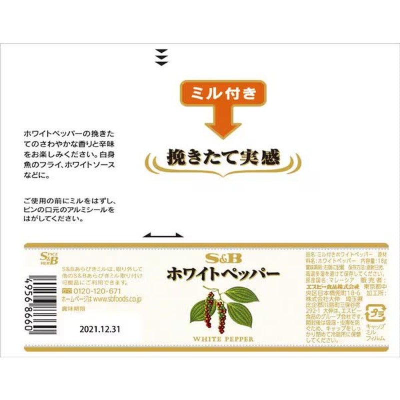 S&B Foods S&B White Pepper with Mill 18g Product Specifications