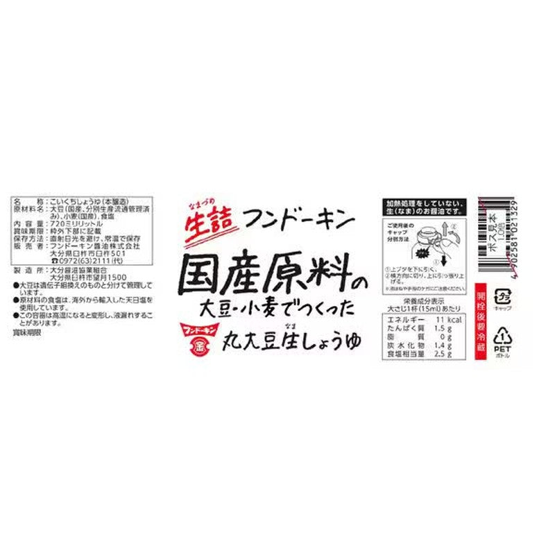 Fundokin Soy Sauce Additive-Free Whole Soybean Raw Soy Sauce 720mL Product Specifications
