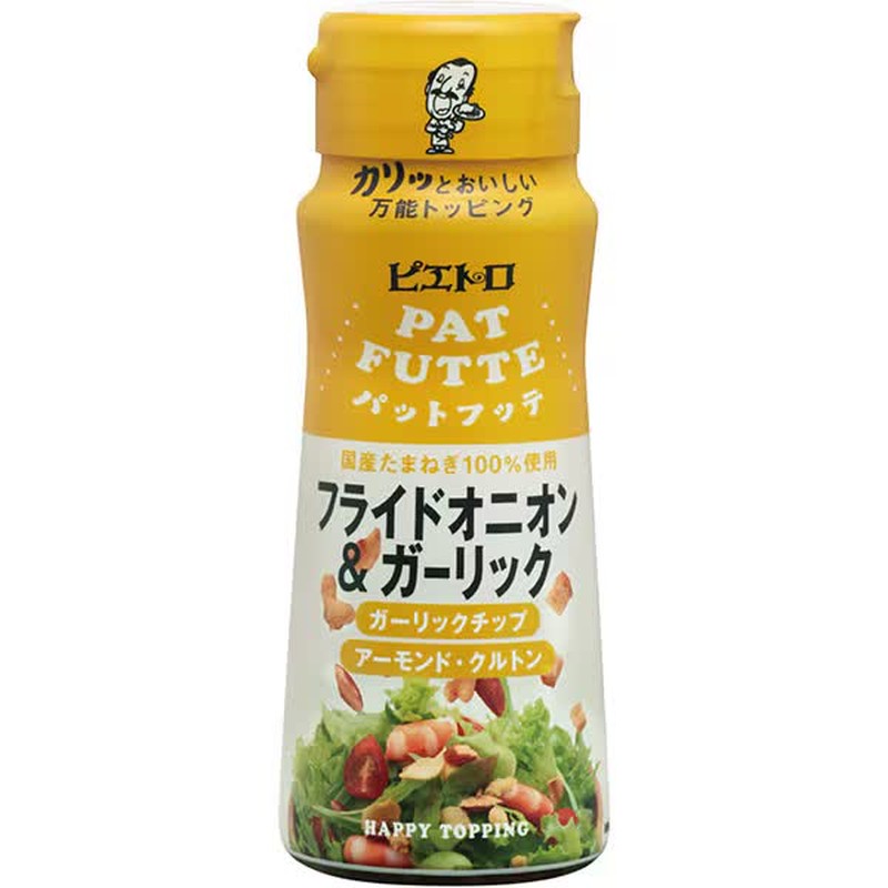 Pietro's "PATFUTTE Fried Onion & Garlic 70g" is a topping that combines crispy fried onions made with 100% domestic onions, slowly and carefully fried, with fragrant garlic chips, almonds, and croutons. The addictive flavor and aroma of garlic, combined with the texture and aroma of nuts, create an exquisite harmony. Simply drizzle it on dishes such as salads, pasta, potato salad, and steak to add flavor and texture, elevating the taste. With a clear flavor without any oily odor, it is a popular and versatile topping that pairs well with a variety of dishes.