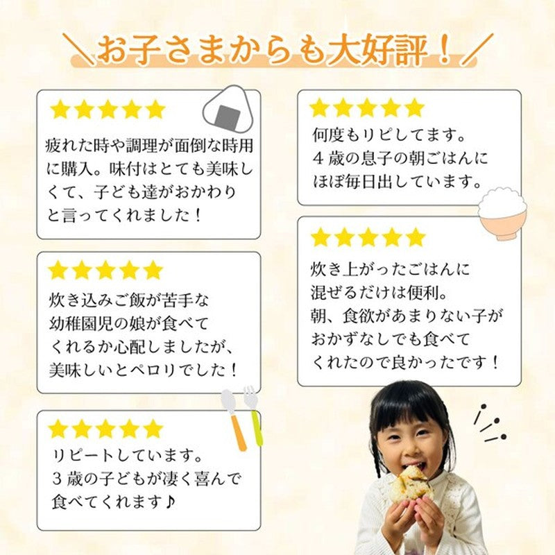 This delicious rice mix features ingredients infused with the umami flavor of dashi and the texture of domestically grown burdock root.