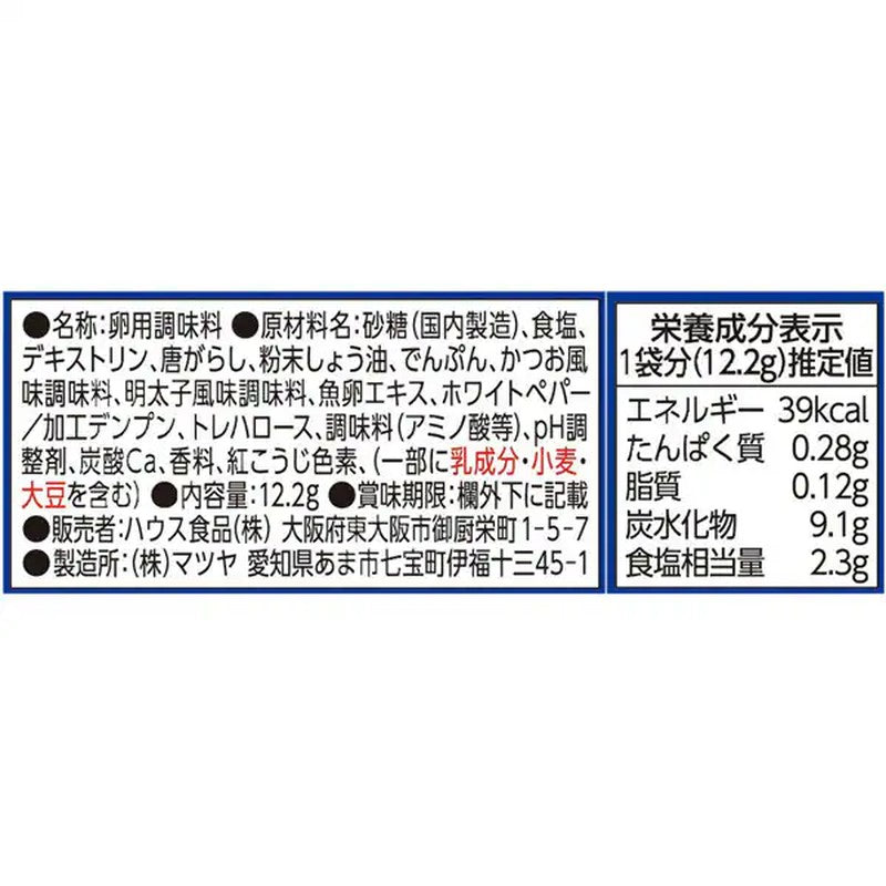 House Foods' "Snack Masterpiece Fluffy Tamagoyaki (Japanese Rolled Omelet) 12.2g" is a seasoning for fluffy tamagoyaki (Japanese rolled omelet) that can be easily made by simply mixing it with eggs and heating it in the microwave. New, patented technology ensures that the tamagoyaki (Japanese rolled omelet) solidifies all the way to the center without becoming dry, and maintains just the right amount of moisture. With the aroma and umami of dashi and the added flavor of mentaiko, you can easily enjoy a small-style izakaya-style omelet at home. Its well-balanced flavor makes it a great side dish or a great snack to go with alcohol, making it a handy product for busy days or when you just want another dish.