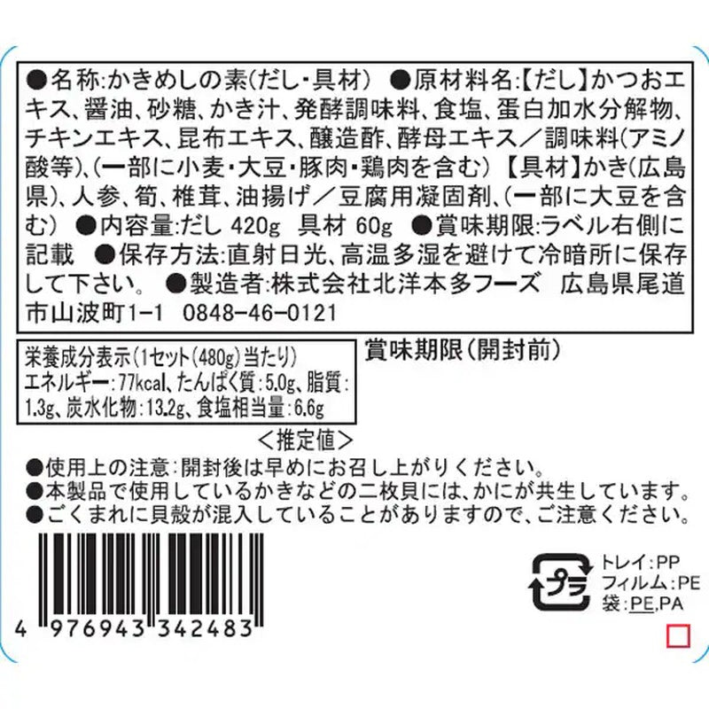 Product Specifications for Hokuyo Honda Foods Seafood Rice Mix, Oyster Rice Base, 480g