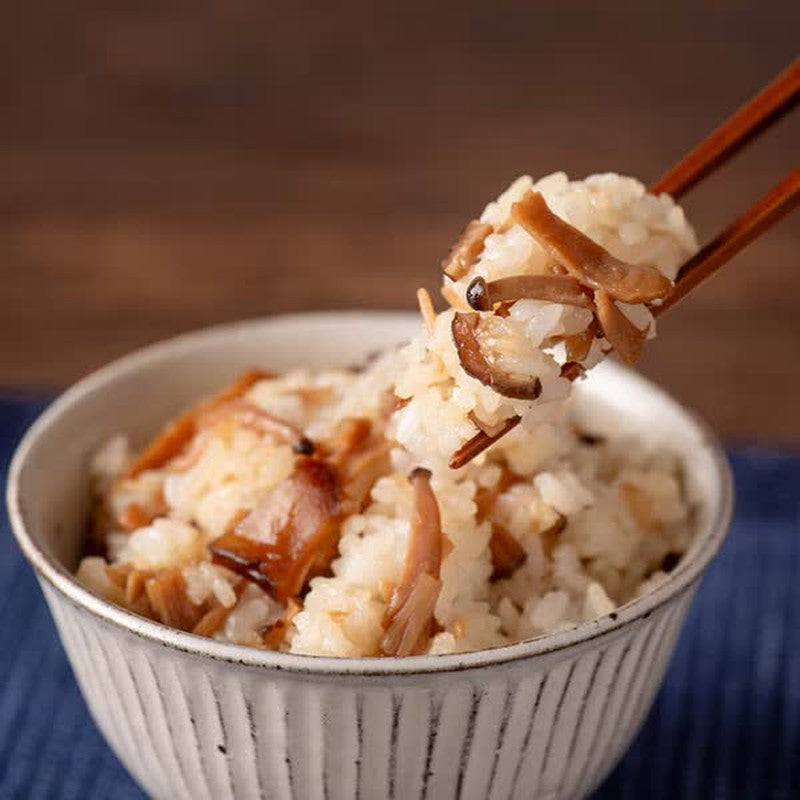 This mixed rice mix contains domestic king oyster mushrooms, dried shiitake mushrooms, enokitake mushrooms, and bunashimeji mushrooms. Simply mix it into cooked rice! It brings out the rich flavor of the mushrooms for a refined Japanese taste.