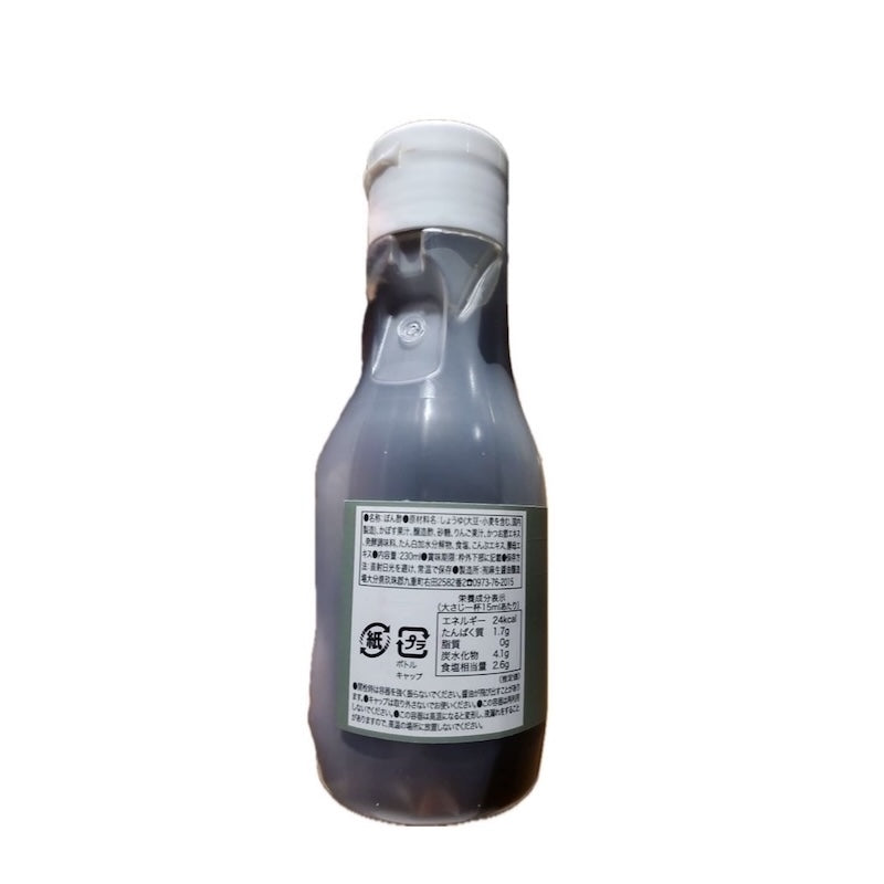 名稱:柚子醋 配料:醬油(含大豆和小麥,日本製造)、卡布斯汁、釀造醋、糖、蘋果汁、鰹魚萃取物、發酵調味料、水解蛋白、鹽、海帶萃取物、酵母萃取物 容量: 230毫升 儲存方法:室溫保存,避免陽光直射。 過敏原:小麥 |