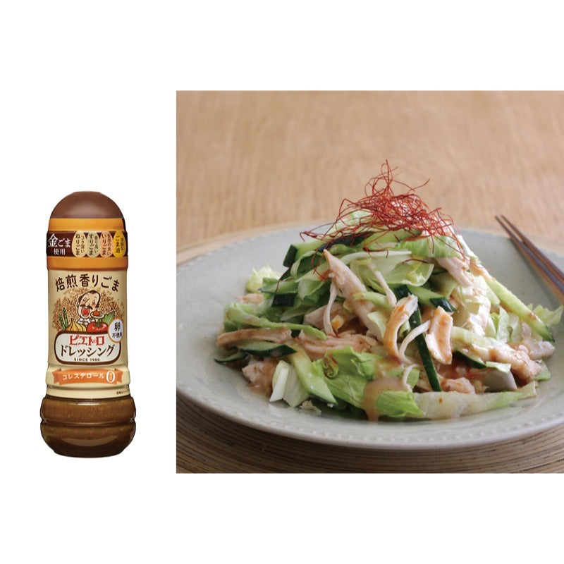 This dressing, which allows you to fully enjoy the aroma and rich flavor of sesame, is the result of Pietro's thorough research into sesame. It uses 50% sesame paste, which adds richness to the flavor, and 100% toasted sesame seeds, which have a nice crunchy texture, as well as golden sesame seeds, and is combined with fragrant ground sesame and mellow sesame oil to create a dressing that truly brings out the sesame flavor. This egg-free and cholesterol-free dressing also meets a variety of needs.