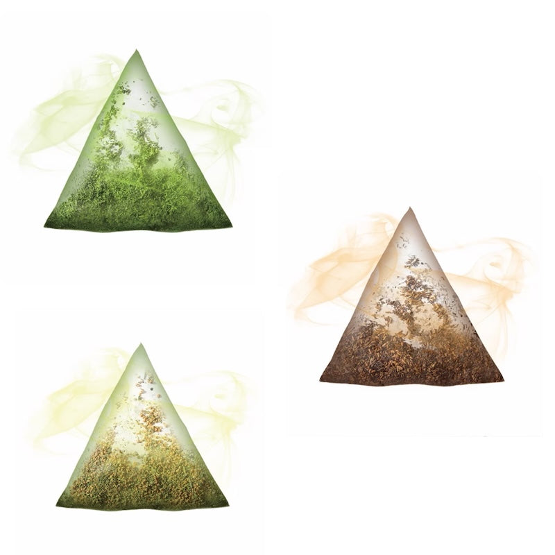 這些茶包採用三角形沖泡方式,快速沖泡出美味的熱飲或冷飲。