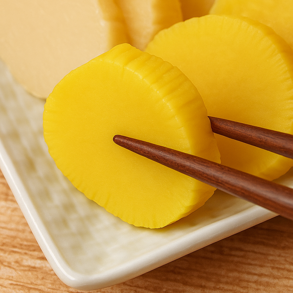 採用黃色4號色素,體現了經典日本醃蘿蔔的標誌性外觀和風味。